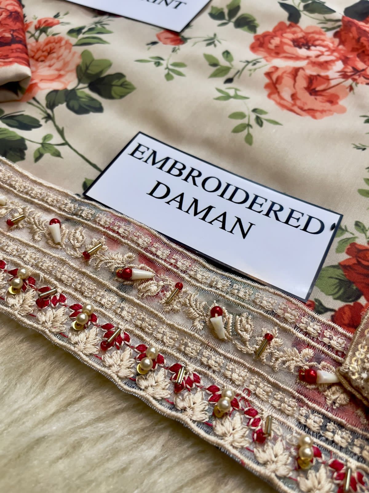 โจ EMBROIDERED SWISS LAWN with Organza Printed & Embroidered Dupatta