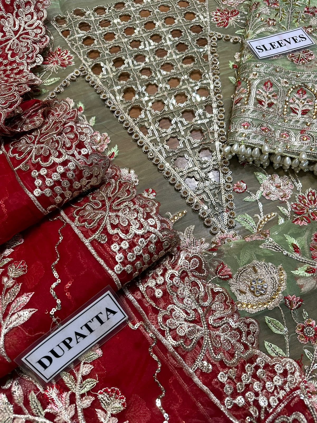 - Dupatta: Heavy Embroidered with Multi-Thread, Sequence, and Zari Work, 4-Side Stitched Embroidered Border, and 2-Side Attached Shelpper Tussels